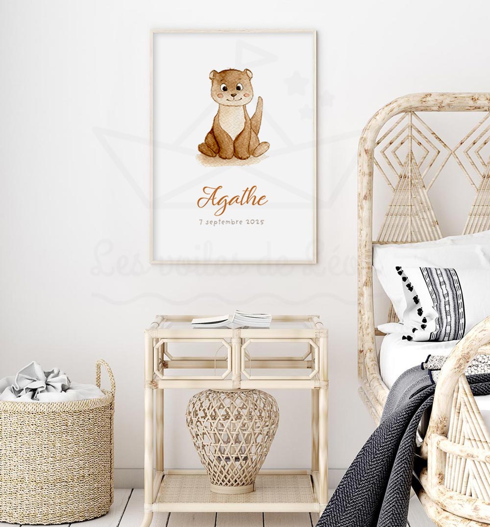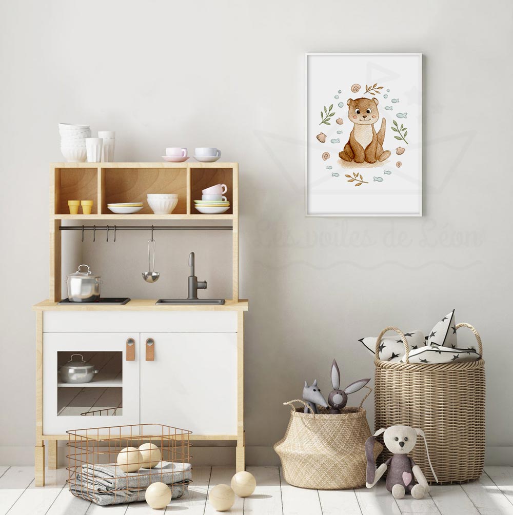Trouvez l’idée pour décorer la chambre de votre enfant ou pour offrir un joli cadeau avec cette affiche personnalisée de loutre à l’aquarelle