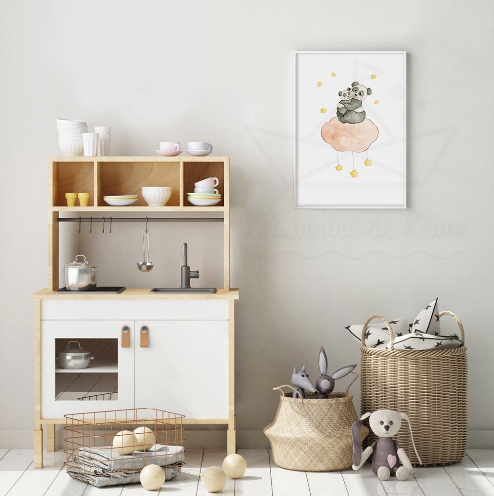 Trouvez l’idée pour décorer la chambre de votre enfant ou pour offrir un joli cadeau avec ce poster de maman et bébé panda dans les étoiles !